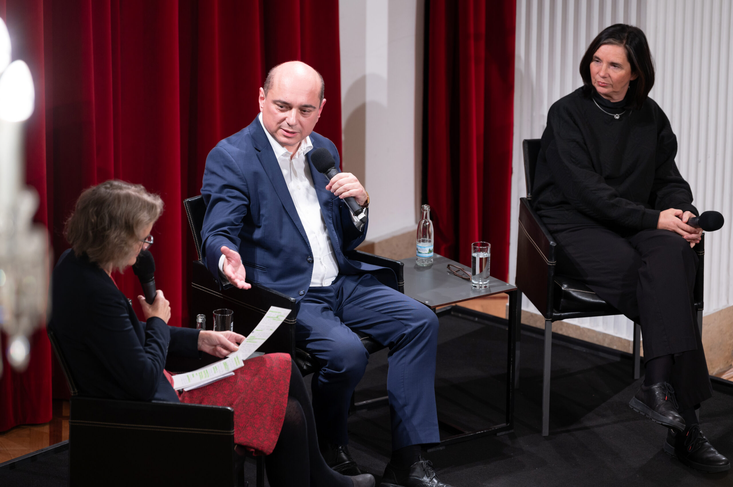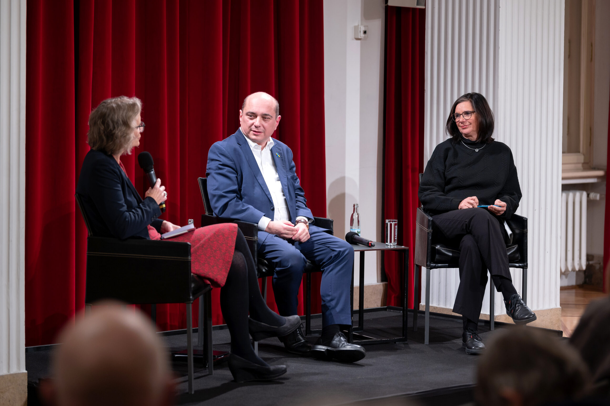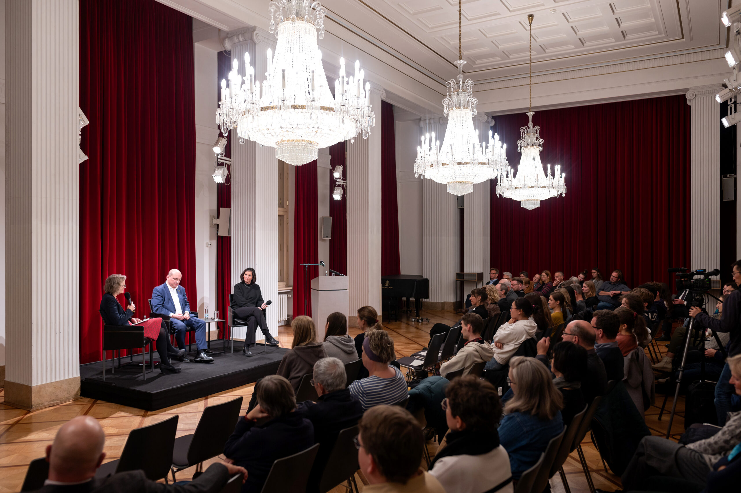 Zum 4. Weimarer Forum für Erinnerungskultur, diesmal bereits zwei Tage vor dem historischen Jubiläum angesetzt, diskutierten im Deutschen Nationaltheater Weimar der Direktor des Europäischen Zentrums der Solidarność Gdańsk, Basil Kerski, und die damalige Vizepräsidentin des Deutschen Bundestages Katrin Göring-Eckardt über Zäsuren und Wendepunkte in der (Demokratie-)Geschichte. Sie tauschten sich aus über Chancen und Herausforderungen vergangener und gegenwärtiger historischer Umbrüche. Die Moderation der Veranstaltung übernahm Liane von Billerbeck vom Deutschlandradio.