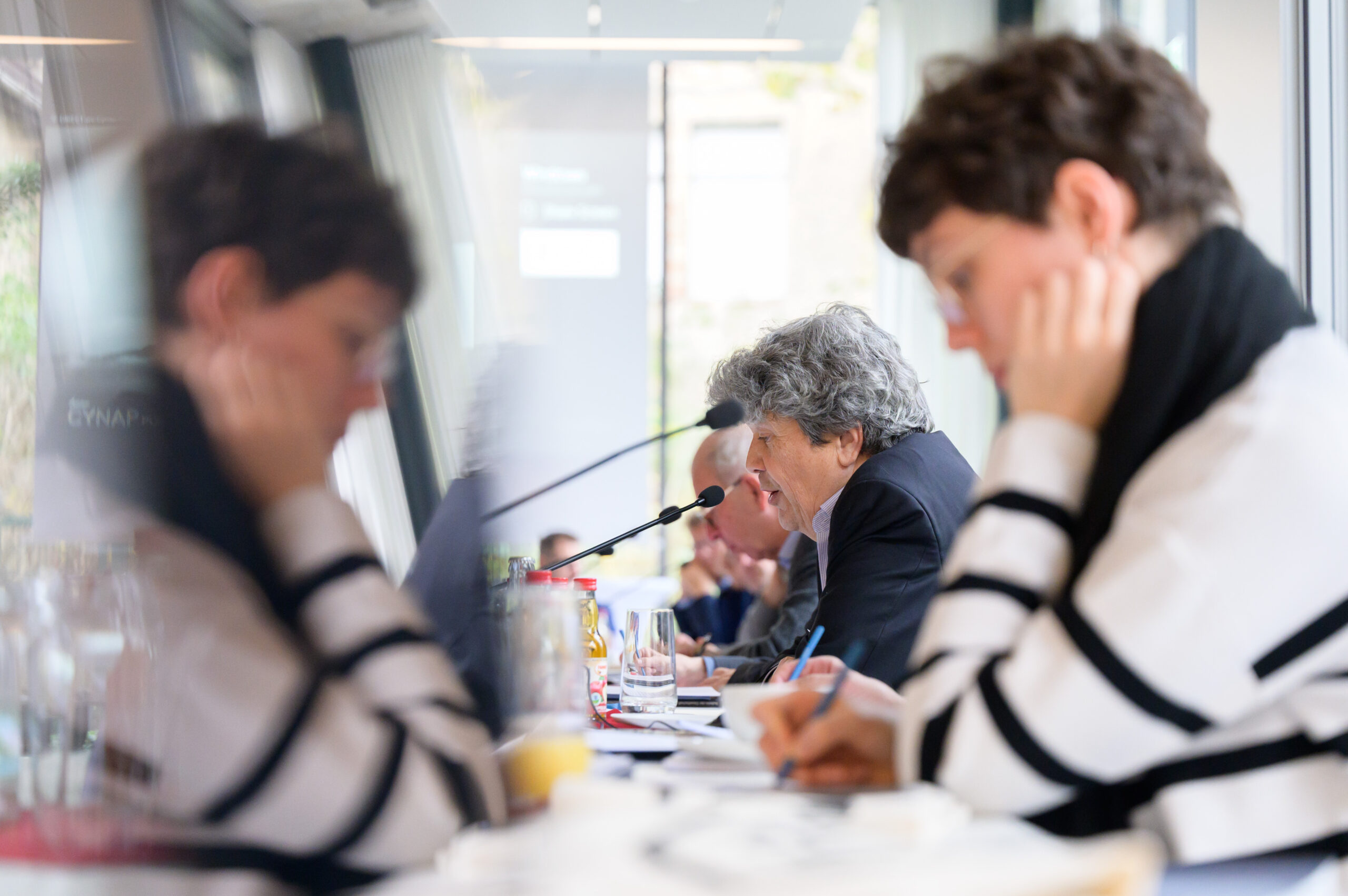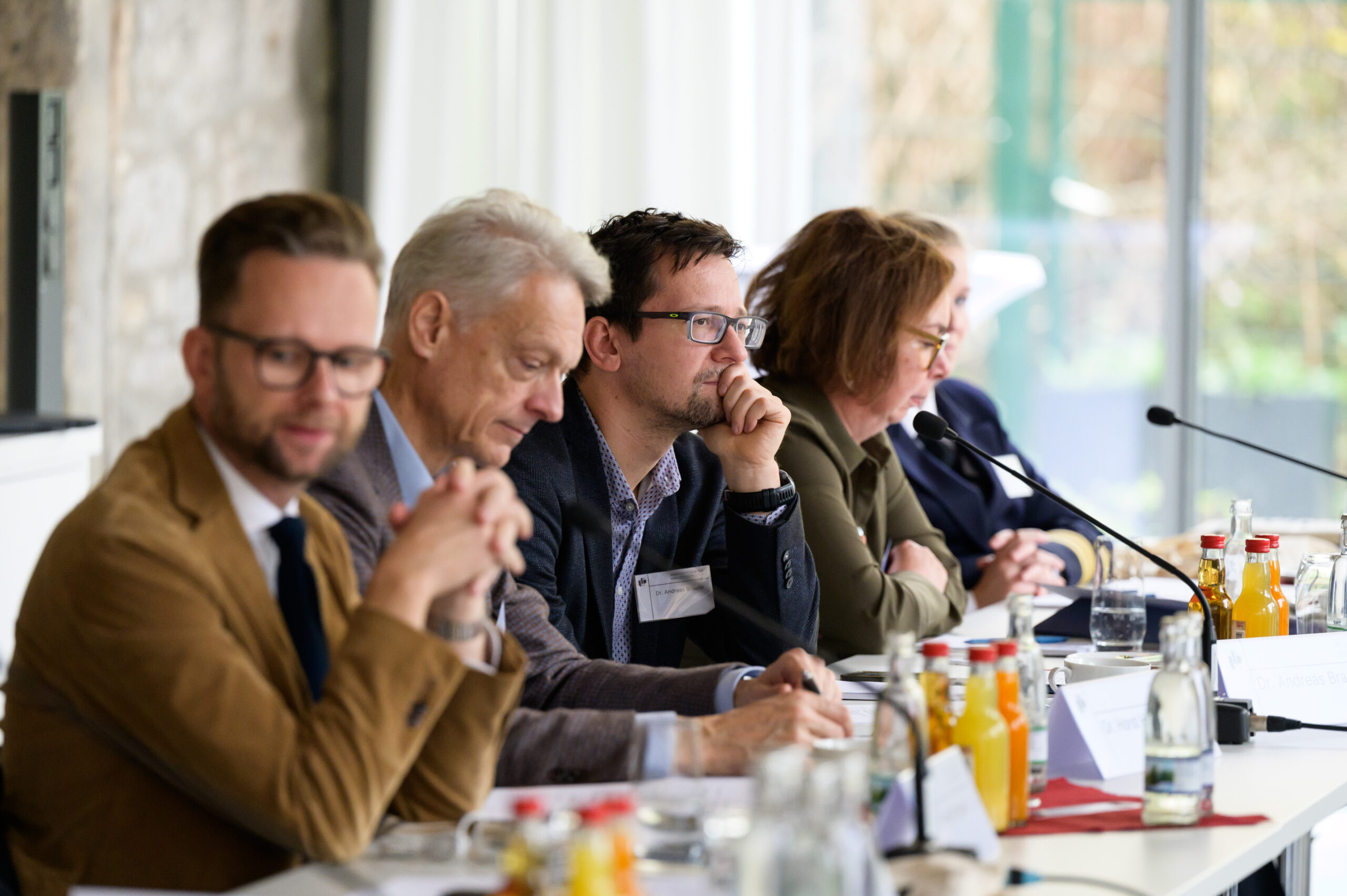 Für den 7. November 2024 waren einmal mehr Vertreterinnen und Vertreter bundesdeutscher Forschungs- und Vermittlungseinrichtungen eingeladen worden, diesmal in den Tagungsraum im Anbau des Haus der Weimarer Republik. Moderiert vom „Gastgeber“ Stephan Zänker diskutierten sie die Stellung der Demokratiegeschichte als Teil deutscher Erinnerungskultur und die Zäsuren, denen beide in den letzten Jahrzehnten unterworfen waren. Diskussionsanstöße gaben die Referate von Martin Sabrow (Zentrum für Zeithistorische Forschung Potsdam), Jörg Ganzenmüller (Stiftung Ettersberg/Universität Jena), Christian Jansen (Universität Trier) und Kai-Michael Sprenger (Stiftung Orte der deutschen Demokratiegeschichte). Nach regen Austausch in den Diskussionen boten die Pausen zusätzliche Gelegenheit zum Austausch und zur Vernetzung des künftigen Vorgehens.