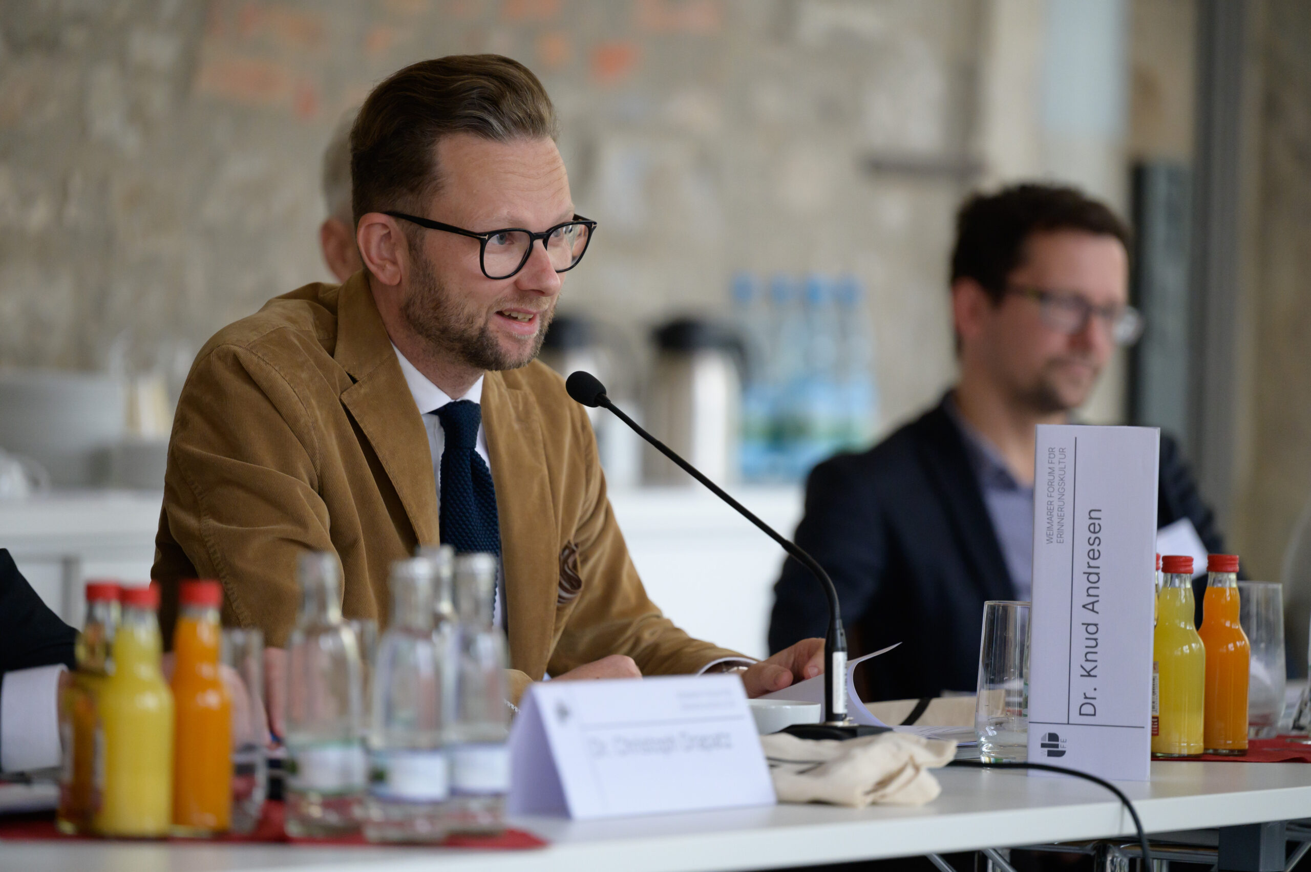 Flankiert wird das Podium von einem Kolloquium im Congress Centrum Weimarhalle, bei dem Vertreterinnen und Vertreter von bis zu 40 bundesdeutschen Institutionen, etwa aus Wissenschaft, Politik, Kunst, Kultur und den Medien an einem runden Tisch in den Austausch gebracht werden, um Strategien dafür zu entwickeln, die Geschichte zur Gestaltung der Gegenwart und Zukunft sinnvoll nutzbar zu machen.